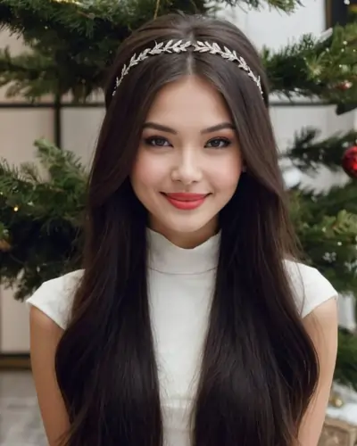 - Glossy straight hair with soft layers