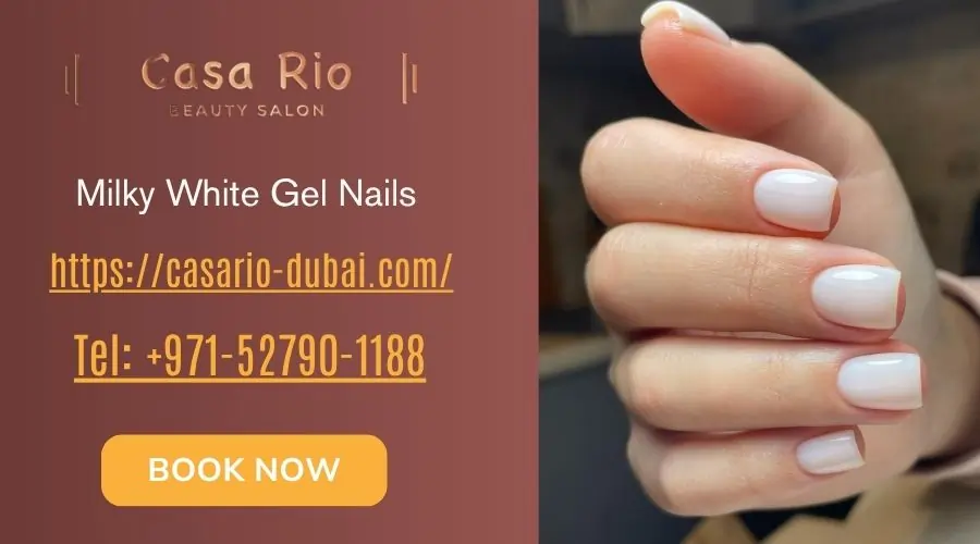 At Casa Rio Beauty Salon in Jumeirah Village Circle (JVC), Dubai, we create stunning milky white gel nails ideas tailored to your style — from minimal everyday looks to luxury nail designs.