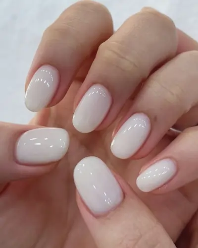 Milky white nails are a soft, semi-transparent white shade with a creamy, natural finish. Unlike solid white polish, they create a sheer, elegant look that enhances the natural beauty of the nails.