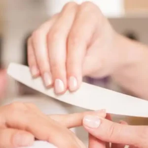 Your nails are cleaned and lightly buffed to ensure a smooth surface, allowing for perfect polish adhesion and a flawless finish.
