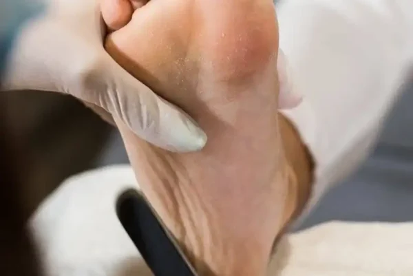 We begin with a warm, relaxing soak to soften the skin and prepare your feet for a deep clean.