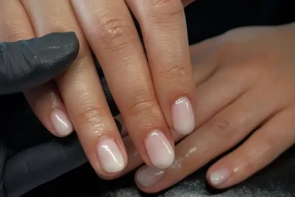 Smooth overlay nails Application: We carefully apply the rubber base directly over your natural nails to create a flawless, even surface. This helps correct imperfections like ridges or uneven textures.